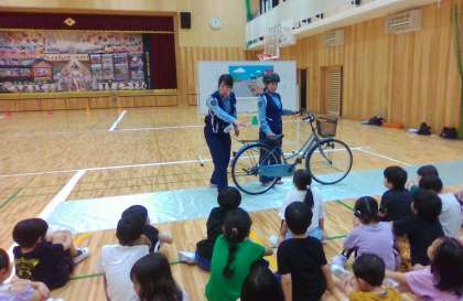 右京警察署と西院第一安全推進委員の皆さんに、自転車の正しい乗り方、交通ルールについて教えてもらいました。自転車の左側通行のルールについて、詳しくわかりやすく学ぶことができました。