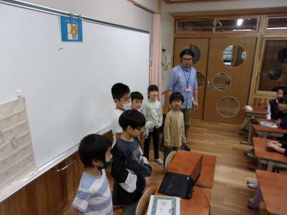 27日(月)、矢車学級は朝の時間に6年生の教室をすべてまわり、24日(金)につくったお返しを渡しました。6年生の皆さん、プレゼントをくださってありがとうございました!