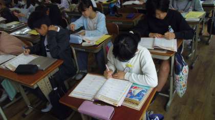 次に教科書にアルファベット小文字のm,n,o,pを書きました。