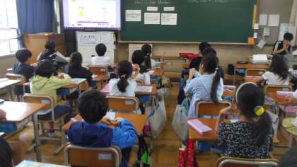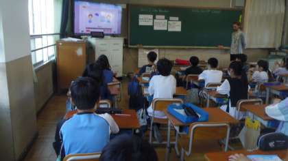 今日からUnit3の学習に入りました。はじめにHello Songを歌いました。