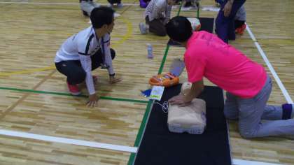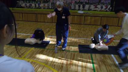 右京消防署の方にお越しいただき、救命救急講習を行いました。胸部圧迫法やAEDの使い方の実技を学びました。