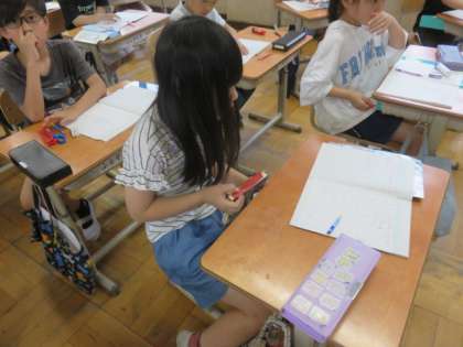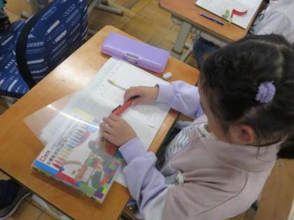 ものの長さを予想する活動をしました。 結果は、「全然違った!!」「ピッタリや!」「あと1mmで予想通り!」と、とても楽しそうに学習していました。