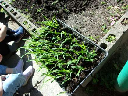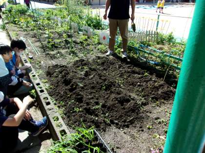 4日(火)、矢車学級では畑にポップコーンの苗とサツマイモの苗を植えました。