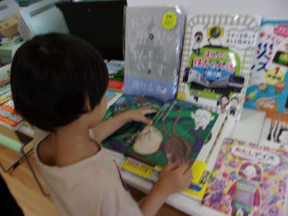 子どもたちは思い思いに本を手に取り、自分が好きな本を選んでいました。