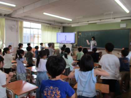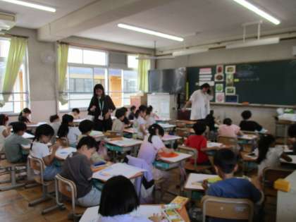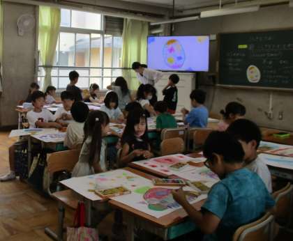 休日参観では、1・2時間目は図画工作科「ふしぎなたまご」を一人ひとりが想像して、オリジナルのたまごを描きました。3時間目の外国語活動「いくつかな」では、英語での挨拶や1から10の数字を歌に合わせて元気に歌いました。