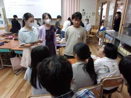 かがやき学習の時間に、修学旅行についてのポスター発表を行いました。修学旅行の行き先である和歌山県の特産物や特色、アドベンチャーワールド、防災、SDGsに各自分かれて調べ学習をしました。調べたことをスライドにまとめ、発表をしました。緊張していた様子でしたが、一生懸命発表し、互いに新たな発見もあったようです。