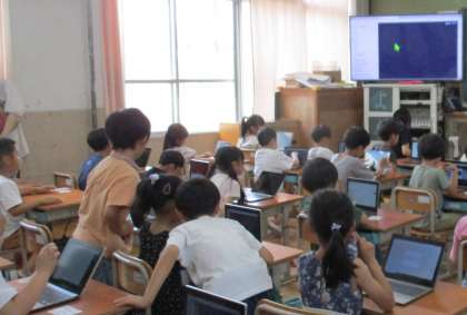 3時間目は生活科「なつと ともだち」の学習を行いました。「夏」と聞くと思い浮かぶものをタブレットにかき、交流しました。タブレット学習にも慣れてきて、楽しく学習することができていました。