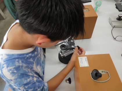 理科の学習で、メダカの体の様子を観察しました。ひれやえらだけでなく、心臓の様子にも着目しながら観察する姿が見られました。