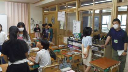 水曜日は小中連携の取組として西院中の英語科の先生が授業のサポートに入っていただいています。ペアトークでは中学校の先生に行事とできることを紹介している人もいました。