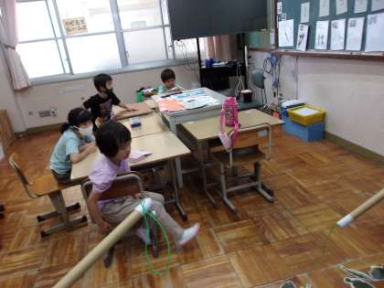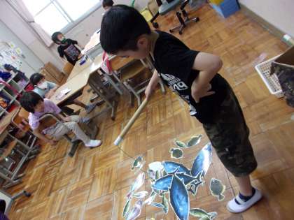 矢車学級では3チームに分かれて算数を学習しています。このチームでは魚釣りを通して数を数えるという学習をしています。