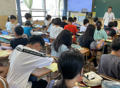 裁縫セットを使った学習が始まっています。練習布を使って、波ぬいや、玉結び・玉どめに挑戦しています。初めて玉結びを見て、「マジックみたいー!」と驚いている児童もいました。何度も挑戦するうちに、糸のはしにちょうどよい大きさでかたい玉結びができるようになりました。1学期の間にボタンつけができるようになることを目標に学習をすすめていきます。