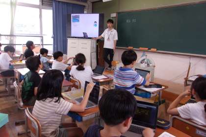 教科書やタブレットなどを用いて調べています。