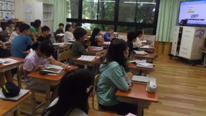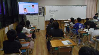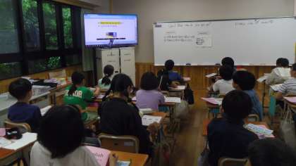 次にデジタル教科書を使って朝起きてから寝るまでの表現に慣れ親しみました。