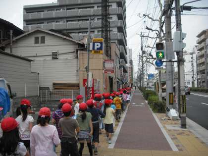 今日は社会の学習で,西院校区の北側に町たんけんに行きました。