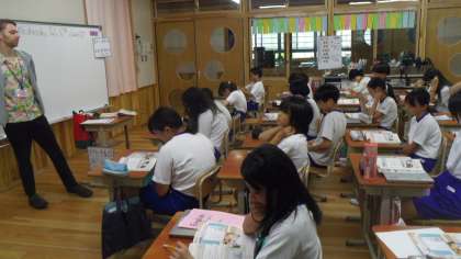 Unit3最後の学習です。はじめにLrt's read.をしました。1時間目のクラスは西院中の英語科の先生と2〜5時間目のクラスはALTの先生と一緒に学習しました。