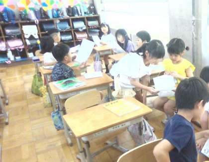 自分のお気に入りの本を友だちに紹介しました。友だちのお気に入りの本を聞いて、今まで読んだことのない本をたくさん知ることができました。