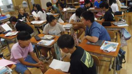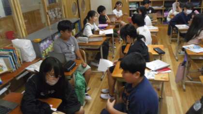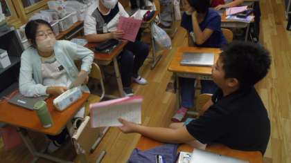ペアトークで夏休みに行ったところとそこでしたことを伝え合いました。