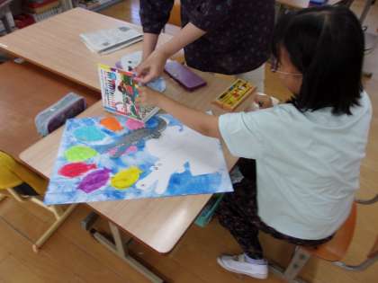 矢車学級では図画工作で「お話の絵」の学習を進めています。今年度は先生たちが読み聞かせをした3冊から子どもたちが描きたい本・シーンを選んで描いています。