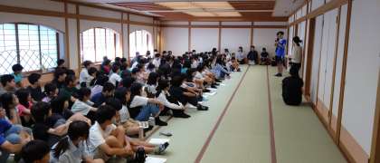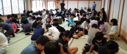 朝は、水筒に今日一日のお茶を入れ、大広間で朝の集いをしました。グループごとに今日のアドベンチャーワールドの活動を確認しました。2日目も仲間と共に楽んで、素敵な思い出を作ってきます