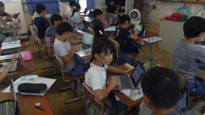最後に各自のギガ端末を使って文房具ビンゴゲームをして文房具の言い方に慣れ親しみました。