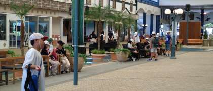 入場口あたりのアーケードに子どもたちが帰ってきました。