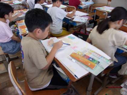 図画工作科では、「お話の絵」の学習に取り組んでいます。