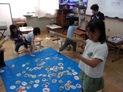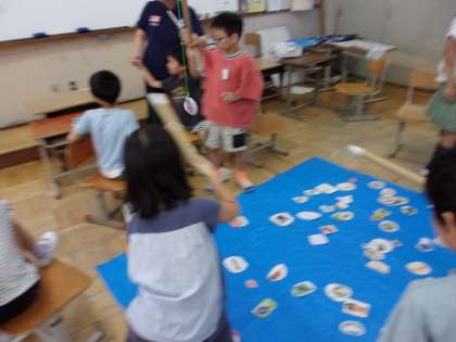 「食べ物は3点、それ以外は1点」、「赤色は3点、それ以外は1点」というルールで行いました。楽しくみんなで学習を行うことができました。