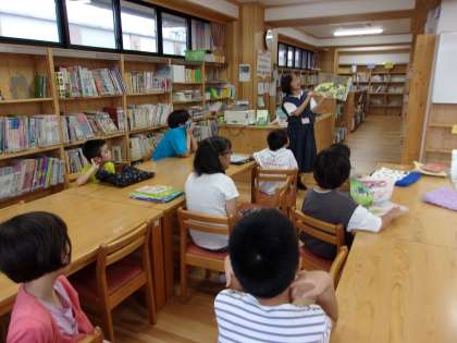 初めに読み聞かせを聞き、そのあと、自分たちの借りたい本を選びました。楽しく読み聞かせを聞くことができました。