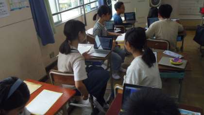 後半にはペアトークでオリジナルタウンの紹介と道案内をしました。ロイロノートで作ったマイタウンを紹介しあいました。