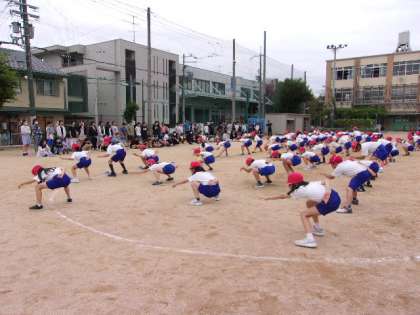 スポーツフェスティバルに向けて学年で練習に取り組んでいます。