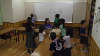 昨日に続きALTの先生のイングリッシュカフェを行いました。ALTの先生はイラストがとても得意なのでイラストを描いてもらっている人がいました。