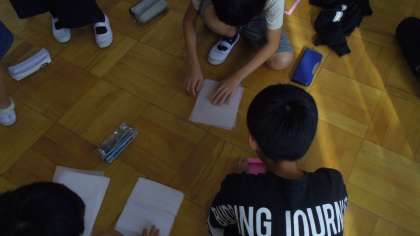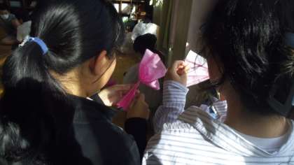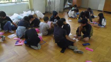 6校時に係活動をおこないました。準備係はゴールラインの花飾りを作成しました。