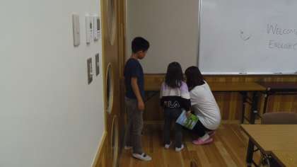 昼休みにイングリッシュカフェを行いました。矢車学級、1年生、2年生の子どもたちが好きなものを言って、それをALTの先生がノートに描きました。