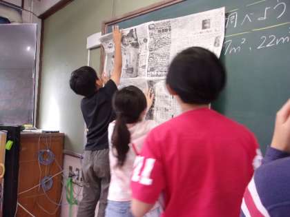 新聞紙を使って1平方メートルを作り、