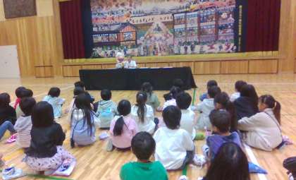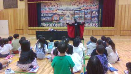 歯科衛生士さんに、歯みがきの仕方を人形劇やマジックをしてもらいながら、教えてもらいました。