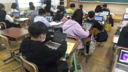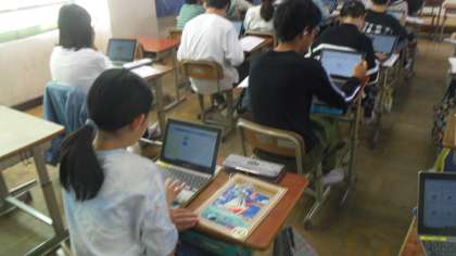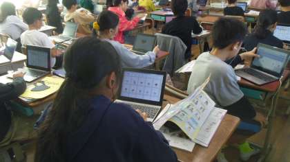 次に各自のギガ端末を使ってデジタル教科書やロイロノートで表現や単語の練習をしました。
