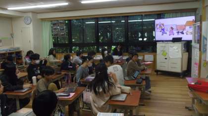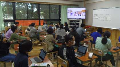 はじめに歌を歌いました。多くの子どもたちが歌えるようになってきました。