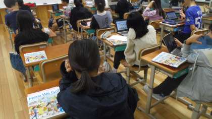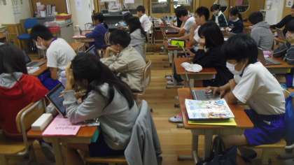 次にはLet's listen.をしました。このユニットは教科書の内容変更に伴う移行単元で教科書に記載されていないのでロイロノートで行いました。