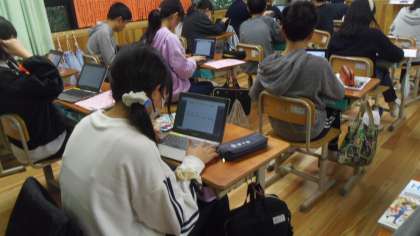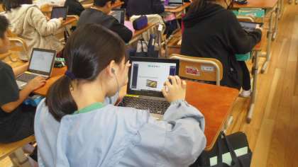 次に各自のギガ端末を使ってALTの先生にする京都紹介の準備をしました。写真を探したり、表現の確認をしたりしました。