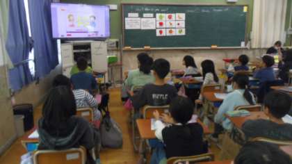 はじめにチャンツでUnit7で学習している表現に慣れ親しみました。