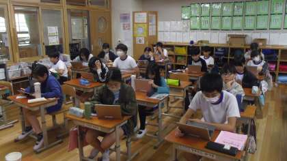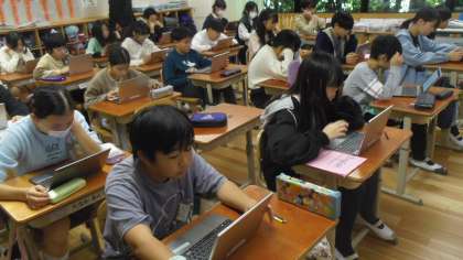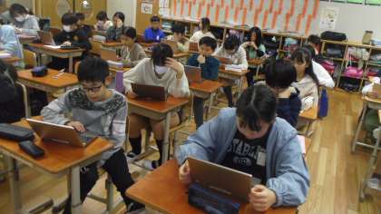 2学期に学習した内容のリスニングチャレンジを行いました。音声を聞いてロイロノートで解答しました。