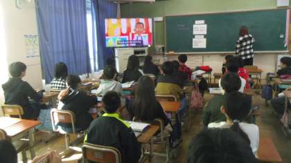 今日はALTの先生と一緒に学習しました。はじめに歌を歌いました。