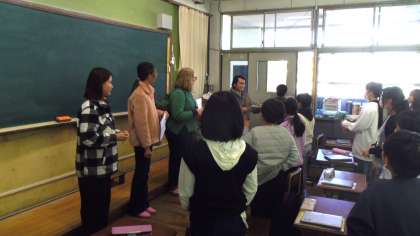 5時間目の外国語科の授業は他の学校のALTの先生も一緒に学習しました。ペアトークでは初対面のALTの先生に定員役になってスペシャルメニューを紹介していました。