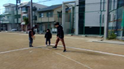 16日(月)、矢車学級の算数は運動場で「ひろさくらべ・面積」を行いました。