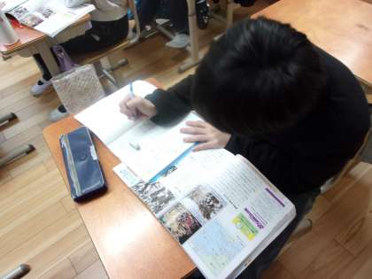 満州事変から始まった日中戦争から、どのように戦争が広がっていったのかについて学習しています。目的があって戦争があったことを知り、驚いている様子でした。