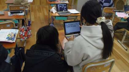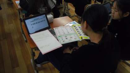 次に各自のギガ端末を使って表現や単語の練習をしました。