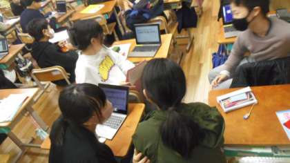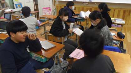 後半にはペアトークで中学校で入りたい部活動と頑張りたい教科を伝え合いました。