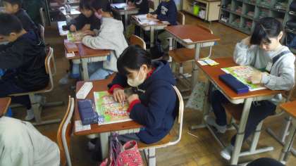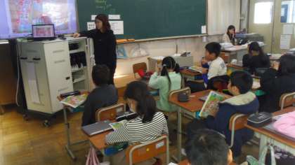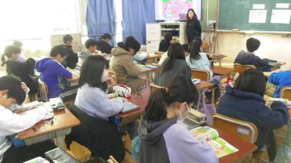 次にポインティングゲームをしました。ALTの先生が言った教室を教科書で指さしました。