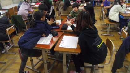次にグループで自分が好きな学校の場所を伝え合いました。