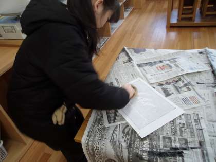 冬休み前から取り組んでいた版画の学習が完成しました。最後まで丁寧に作品づくりに取り組むことができました。仕上がりに満足そうな様子でした。